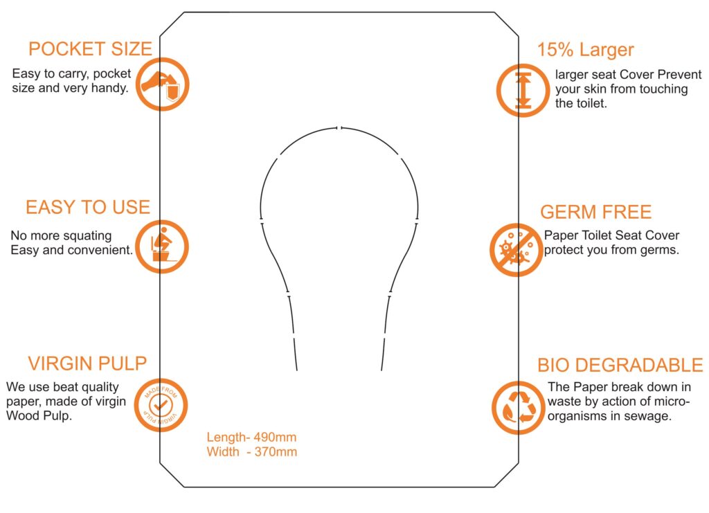 - Put a hygienic barrier between you and those germs with a Disposable paper toilet seat cover.